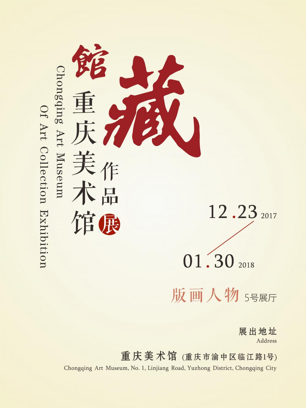 展览时间:2017年12月23日09:00—2018年1月30日17:00 展览地点:重庆美术馆5号展厅 主办单位:重庆美术馆 2017年12月23日,由重庆美术主办的重庆美术馆馆藏作品展(版画)将在重庆美术馆举办。本次展览从馆藏中选出以人物、人文为创作主题的30件版画作品进行展出,这些作品来自于全国各地艺术家们近几年的辛勤创作,以人物为创作主题,或写实,或写意,描绘出时代印记下的人物形象或事件,极具代表性。